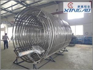 50立方釜內(nèi)用盤(pán)管! 鈦盤(pán)管 制造好驗(yàn)收結(jié)束!